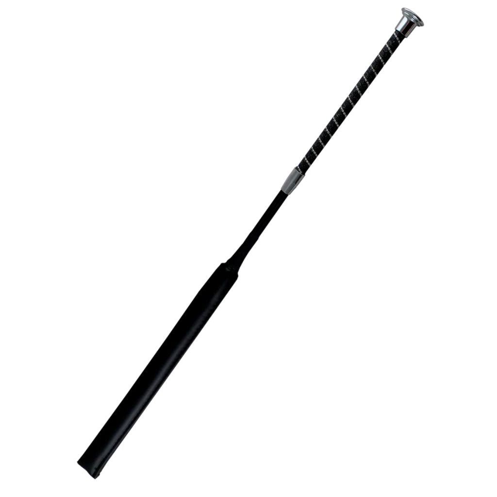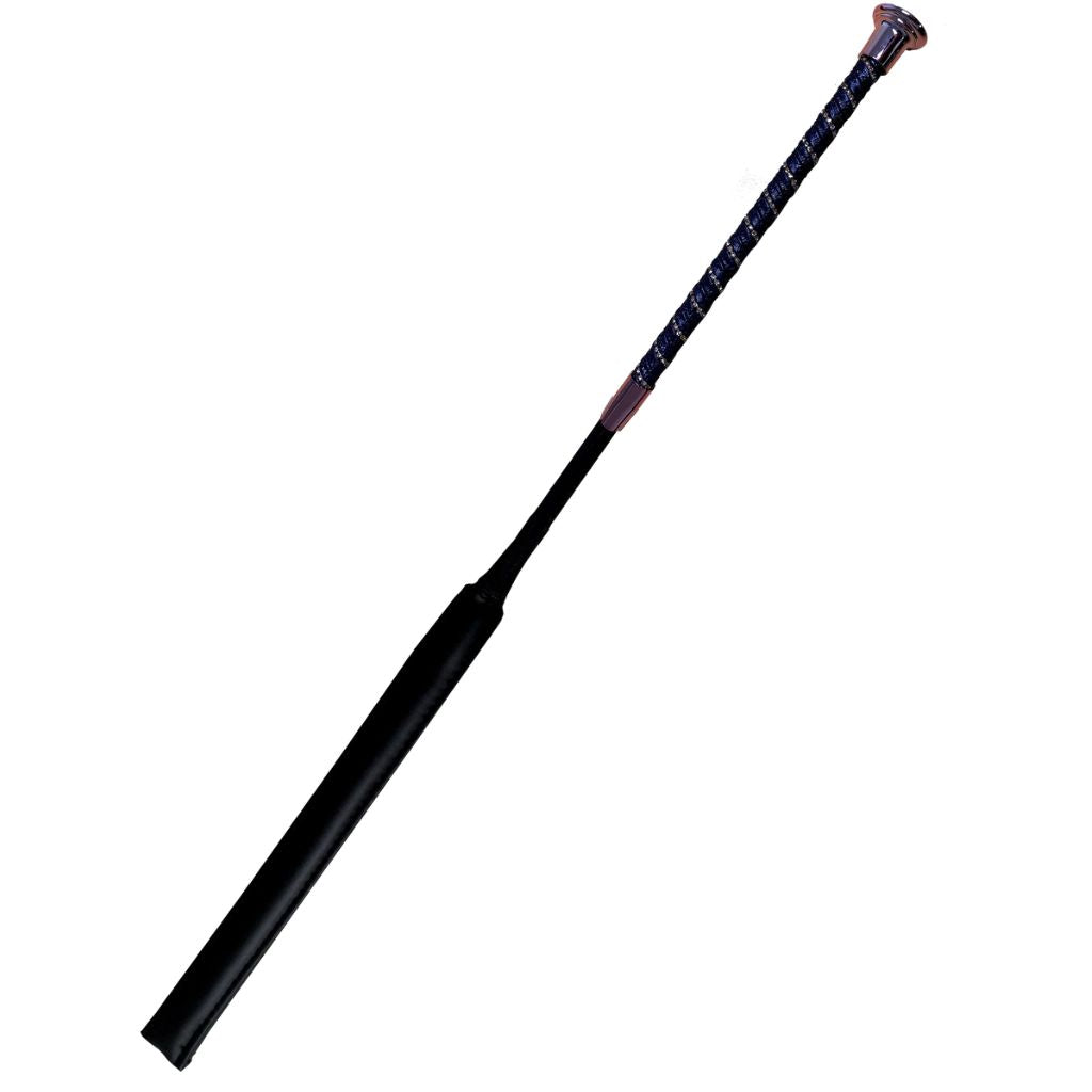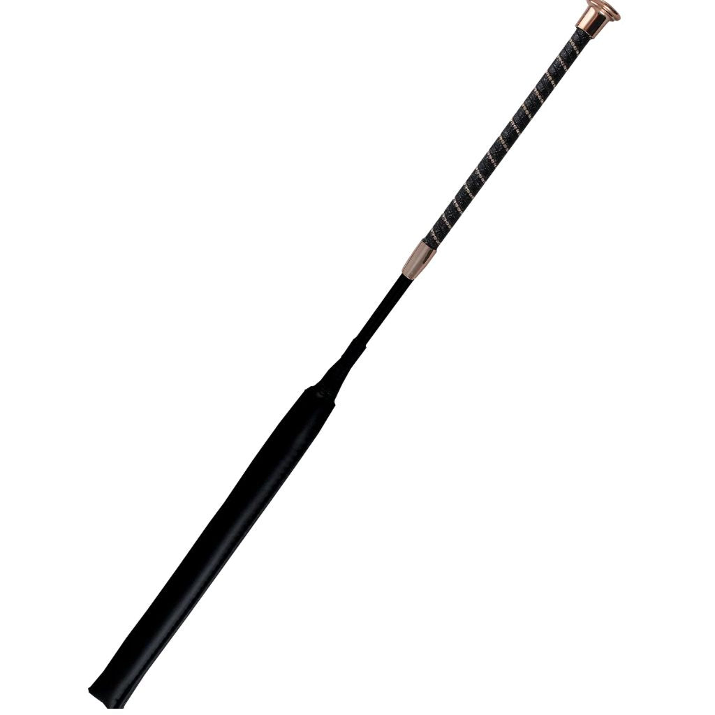 Make a statement in the ring with the Woof Wear Twisted Jump Bat in Black with Rose Gold hardware. Featuring a shimmering faux leather grip twisted with elegant crystals, this 60cm bat combines high-end style with performance. The slim, ergonomic handle offers comfort and control, while the compression-tested foam strike area ensures kind, effective contact. Finished with a flexible fibreglass shaft and Rose Gold branded end cap, it's perfect for riders who value sophistication and substance.