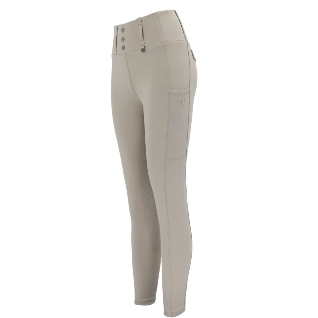 Built for performance, Woof Wear’s Vision Riding Tights in Stone blend sleek style with functionality - perfect for competing. Featuring a Micro-Grip Silicone full seat, they provide secure grip for effortless movement and control in the saddle.. The high waistband, detailed with faux buttons and belt loops, offers a polished look alongside a gunmetal Woof Wear charm. Large phone pockets with subtle embossed logos deliver practical storage without compromising style. Crafted from comfortable 4-way stretch fabric, these tights ensure a flattering silhouette and an ideal fit for every ride.